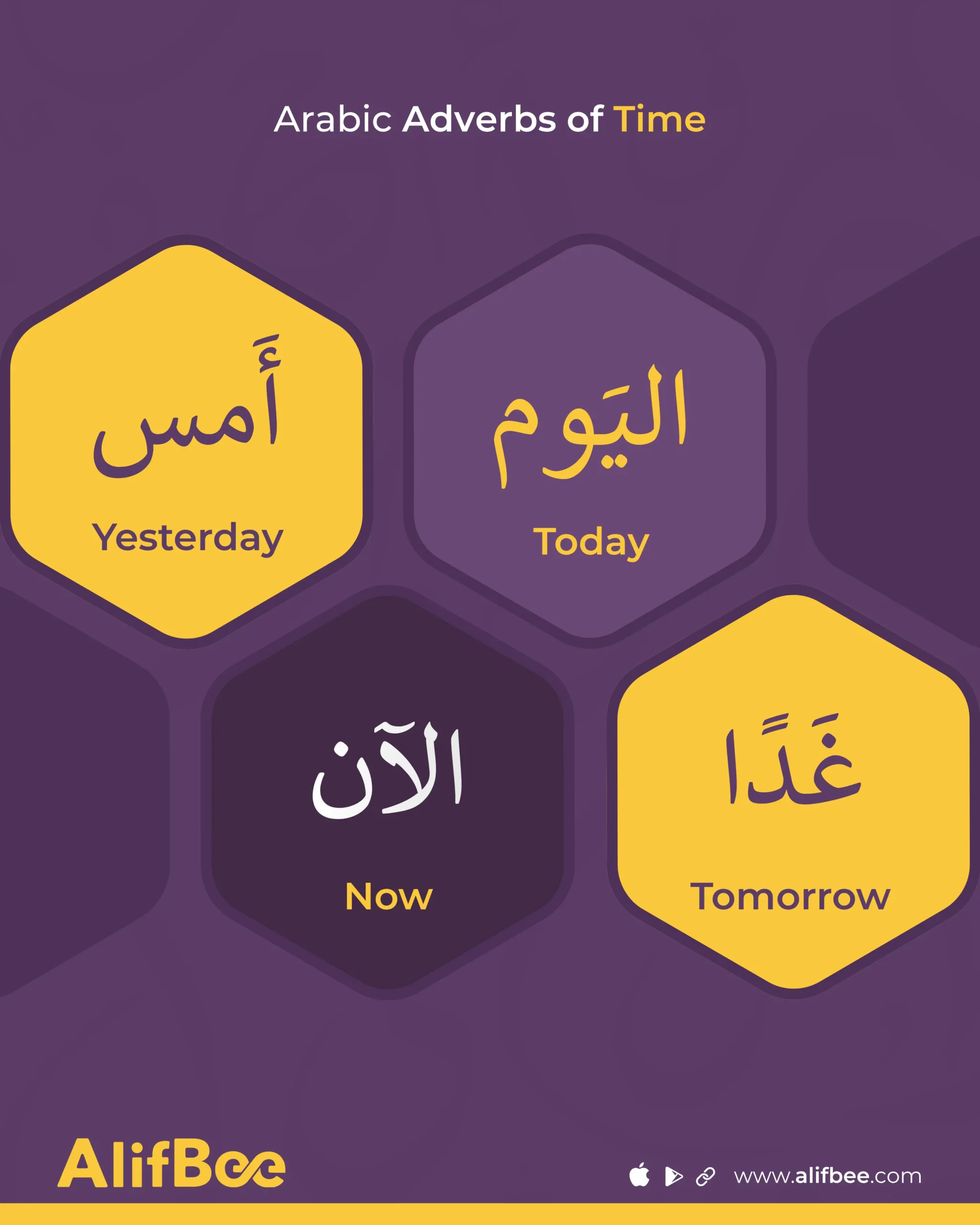 Arabic adverbs help you say when, where, how, and how often something happens. In Arabic, learners usually meet these ideas through words of time and place such as اليوم (today), غدًا (tomorrow), هنا (here), and أمام (in front of).