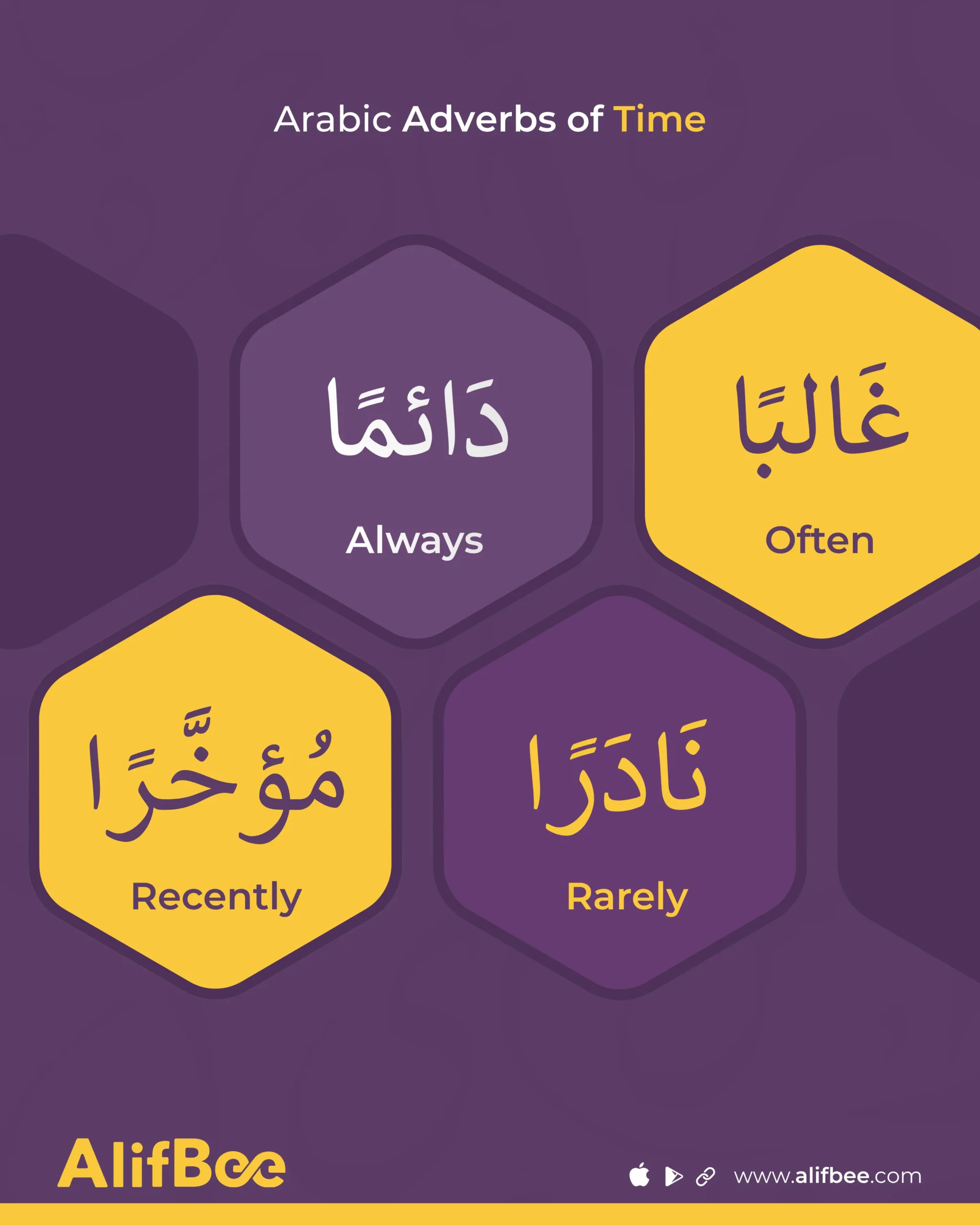 However, it is important to note that while Arabic adverbs of time generally indicate when an action occurs, some also express the frequency or regularity of the action, as do frequency adverbs in English.