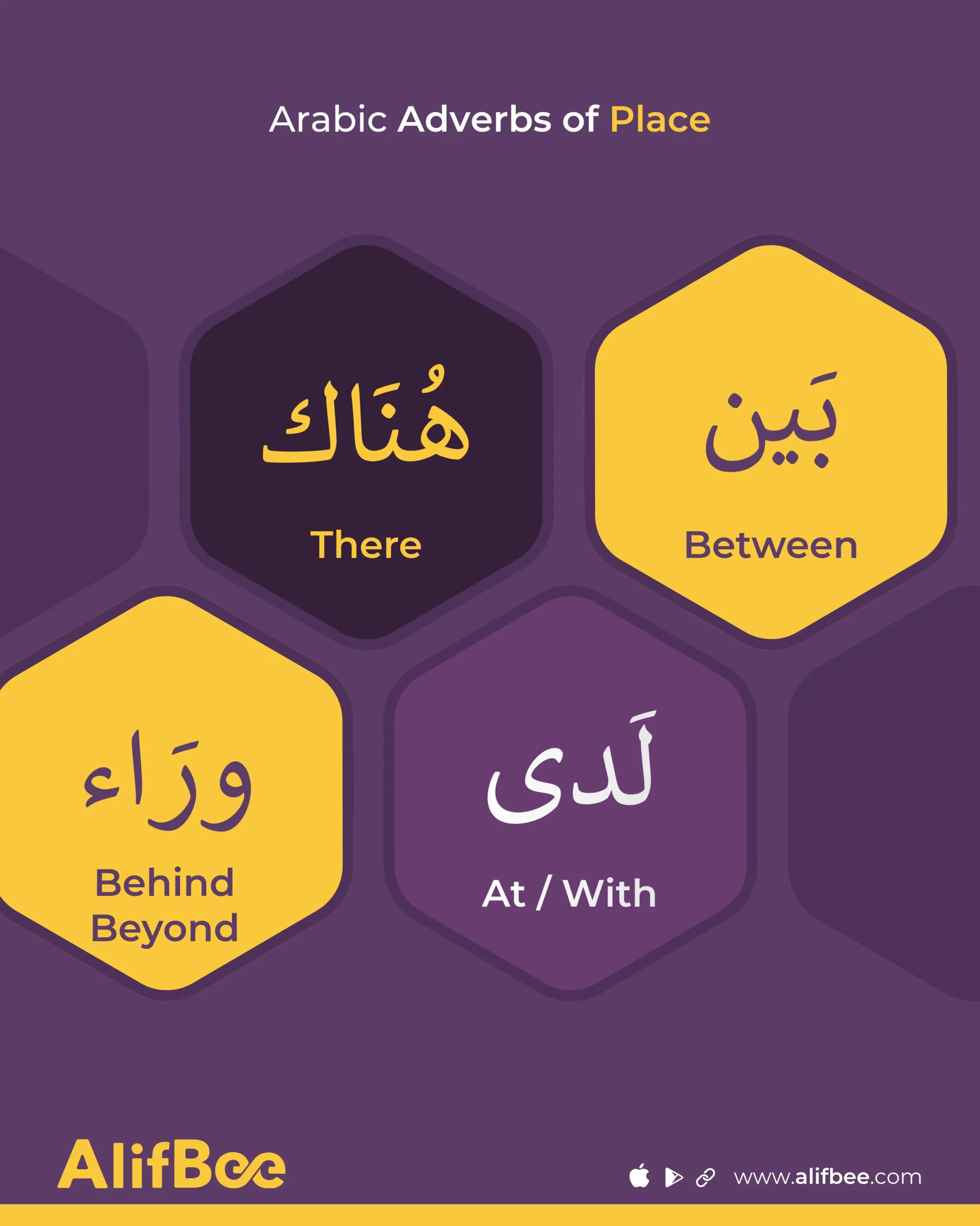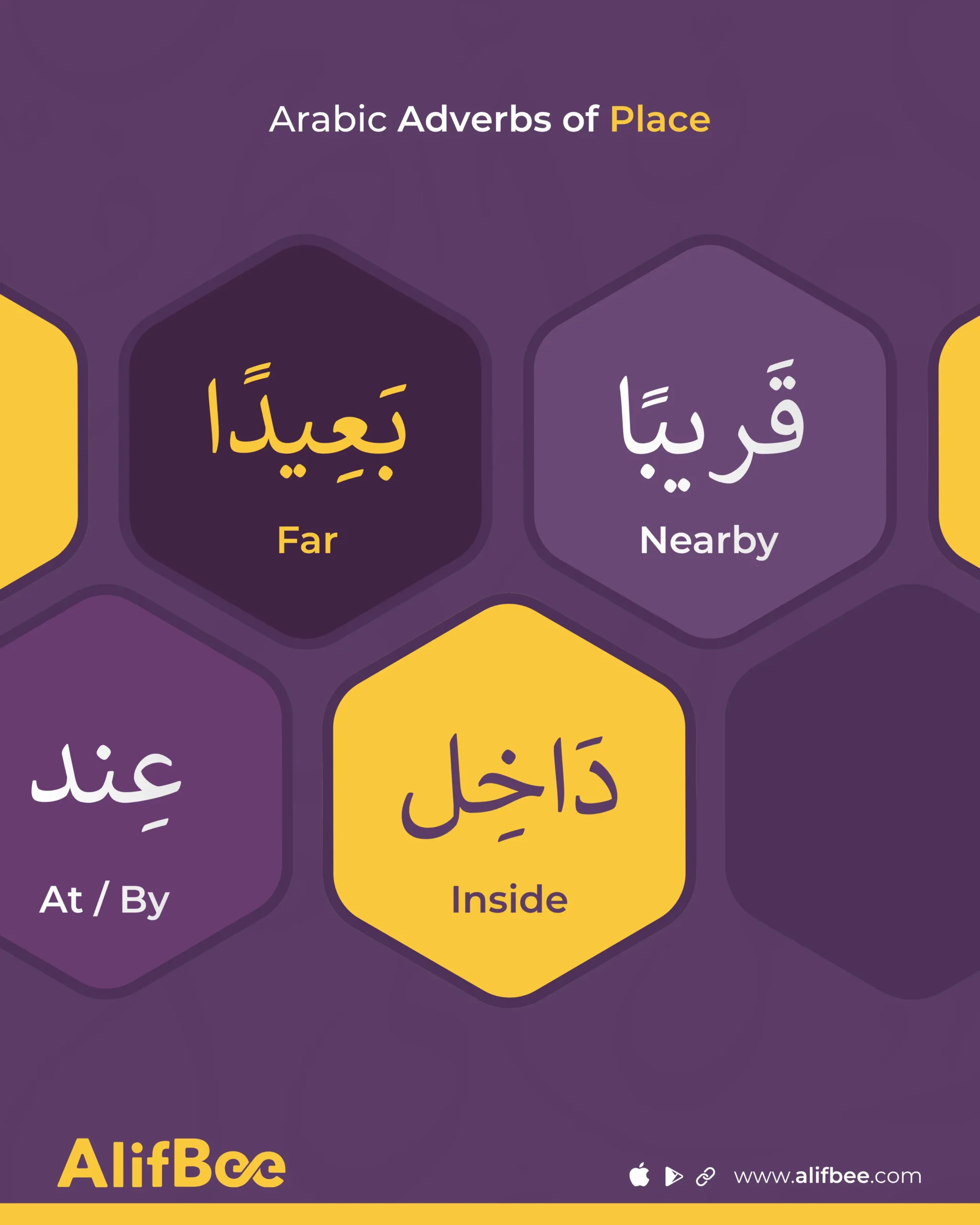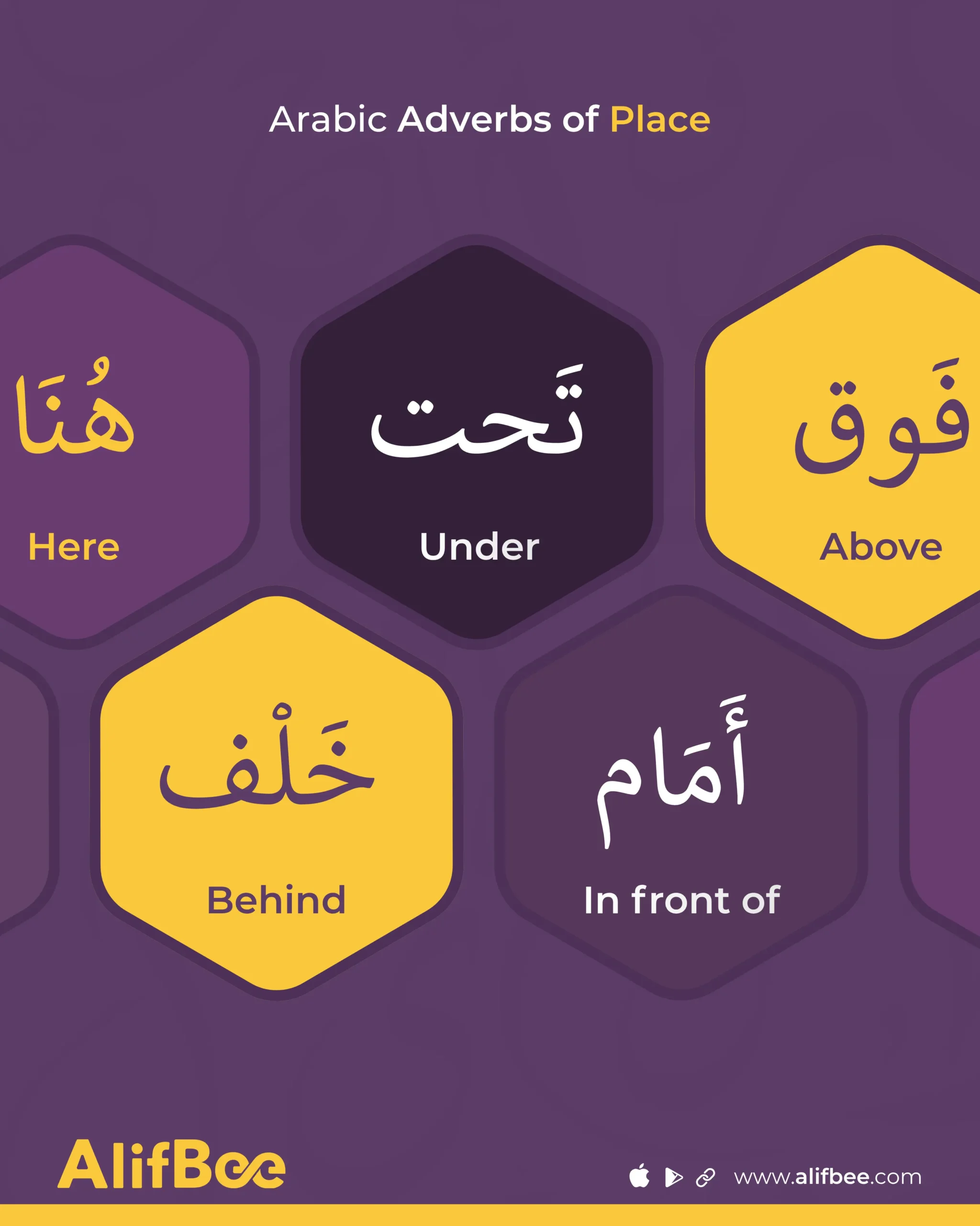 Arabic adverbs of place (ظروف المكان) indicate where an action happens, answering the question: “Where?” They add a sense of location to the sentence.