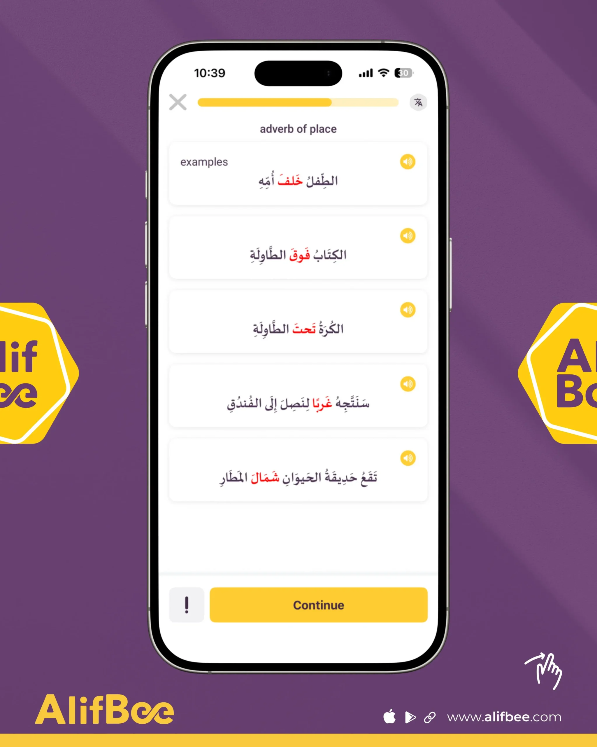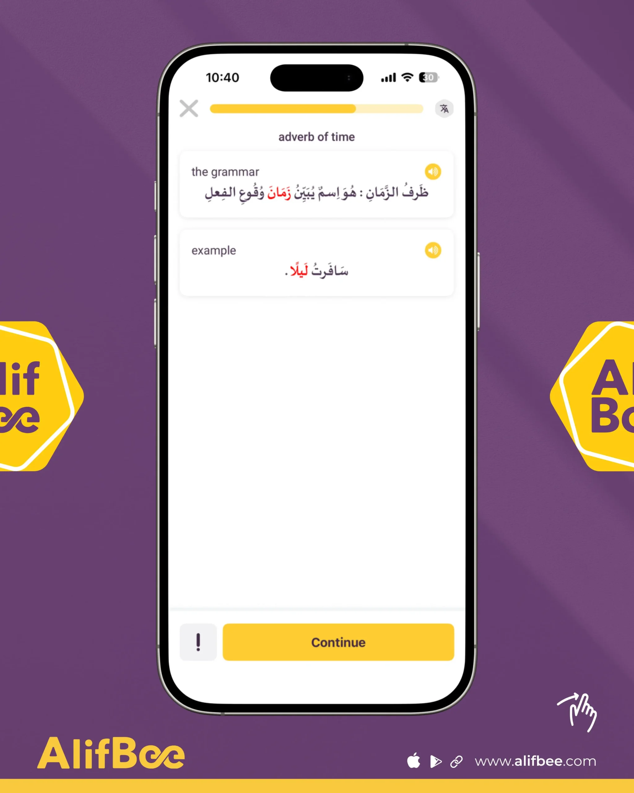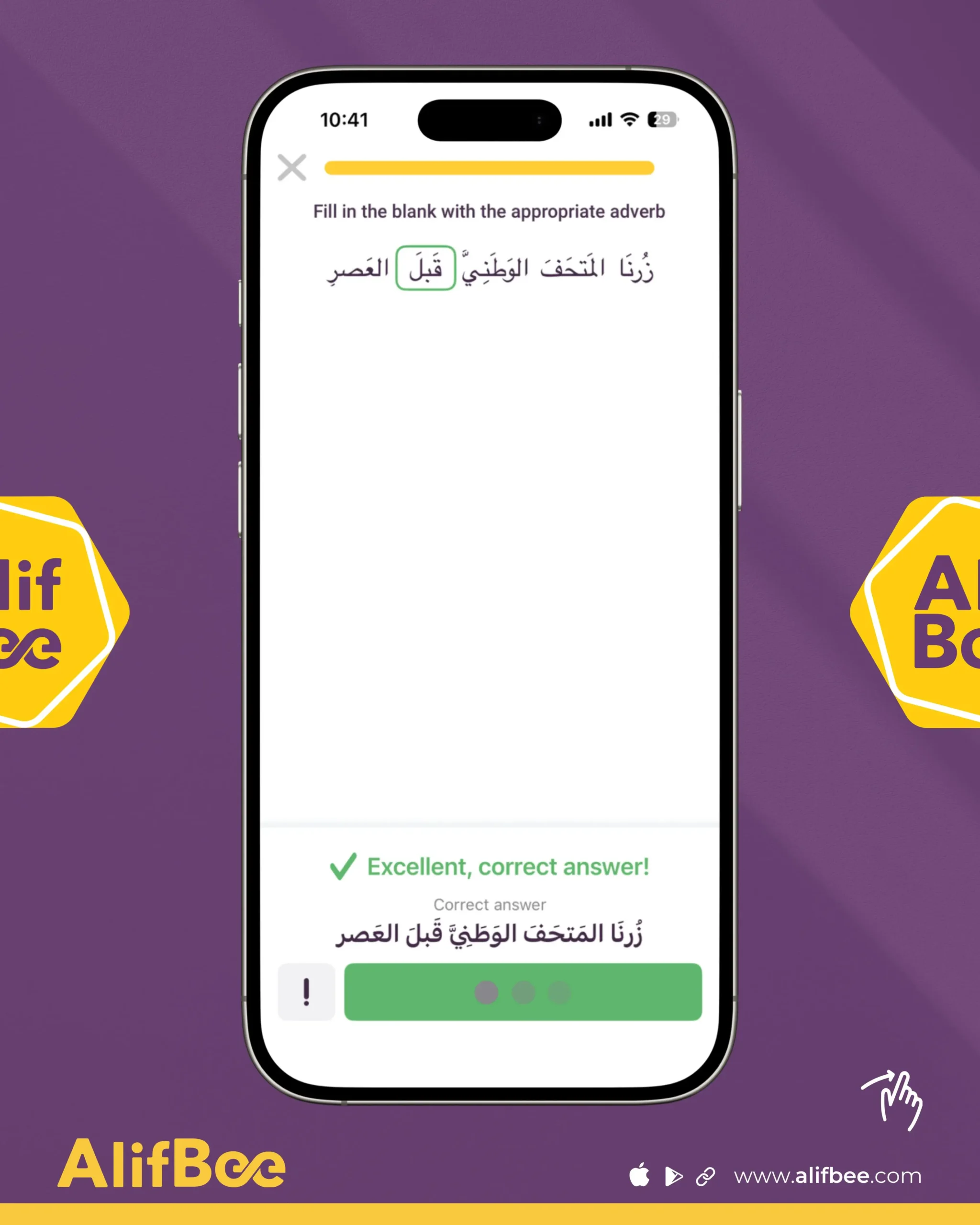 Language learning apps can offer learners a lot of help in practicing using adverbs in real sentences and everyday communication. This is where the AlifBee app comes in, with its interactive lessons designed to make your Arabic learning journey easier, more practical, and more fun!