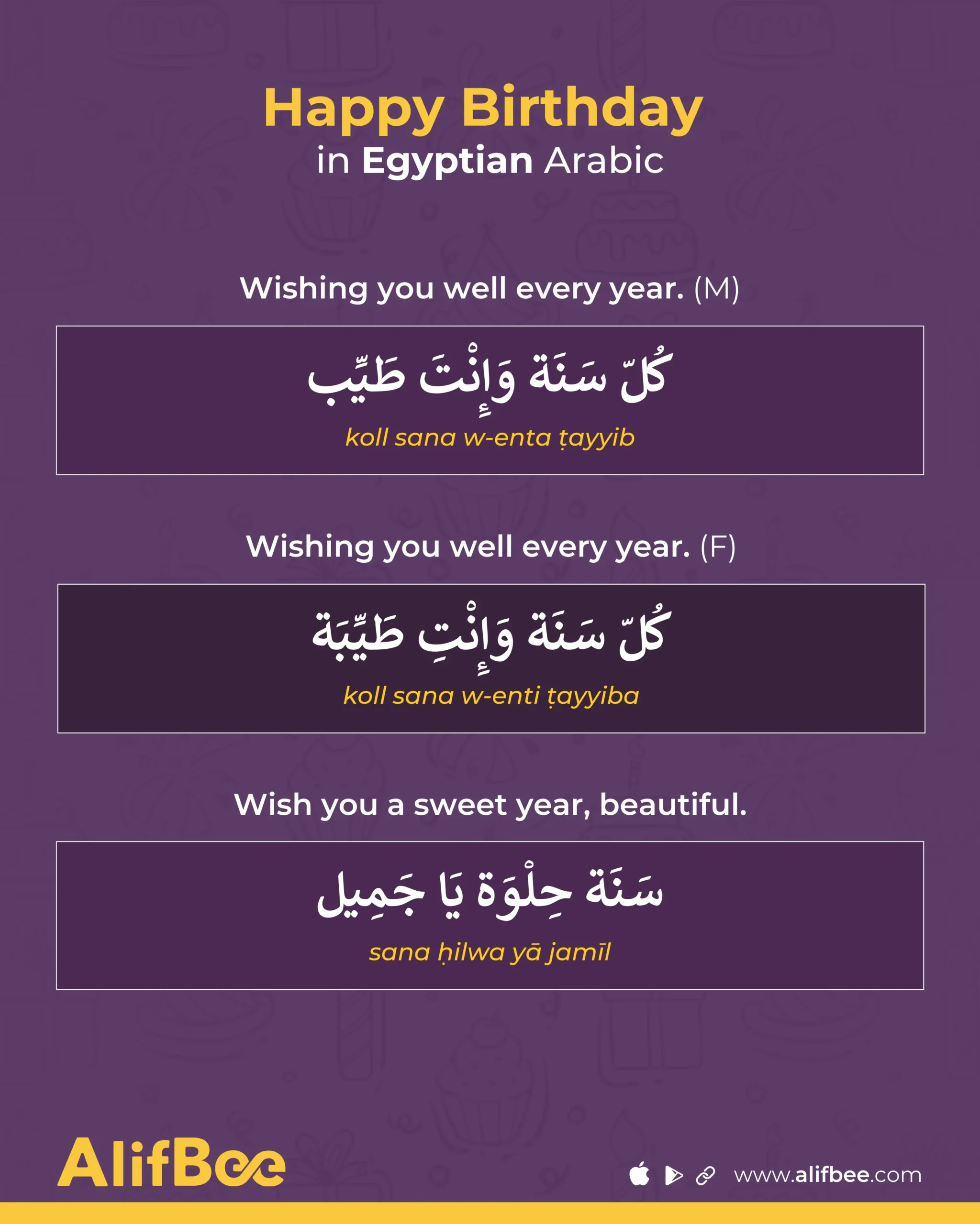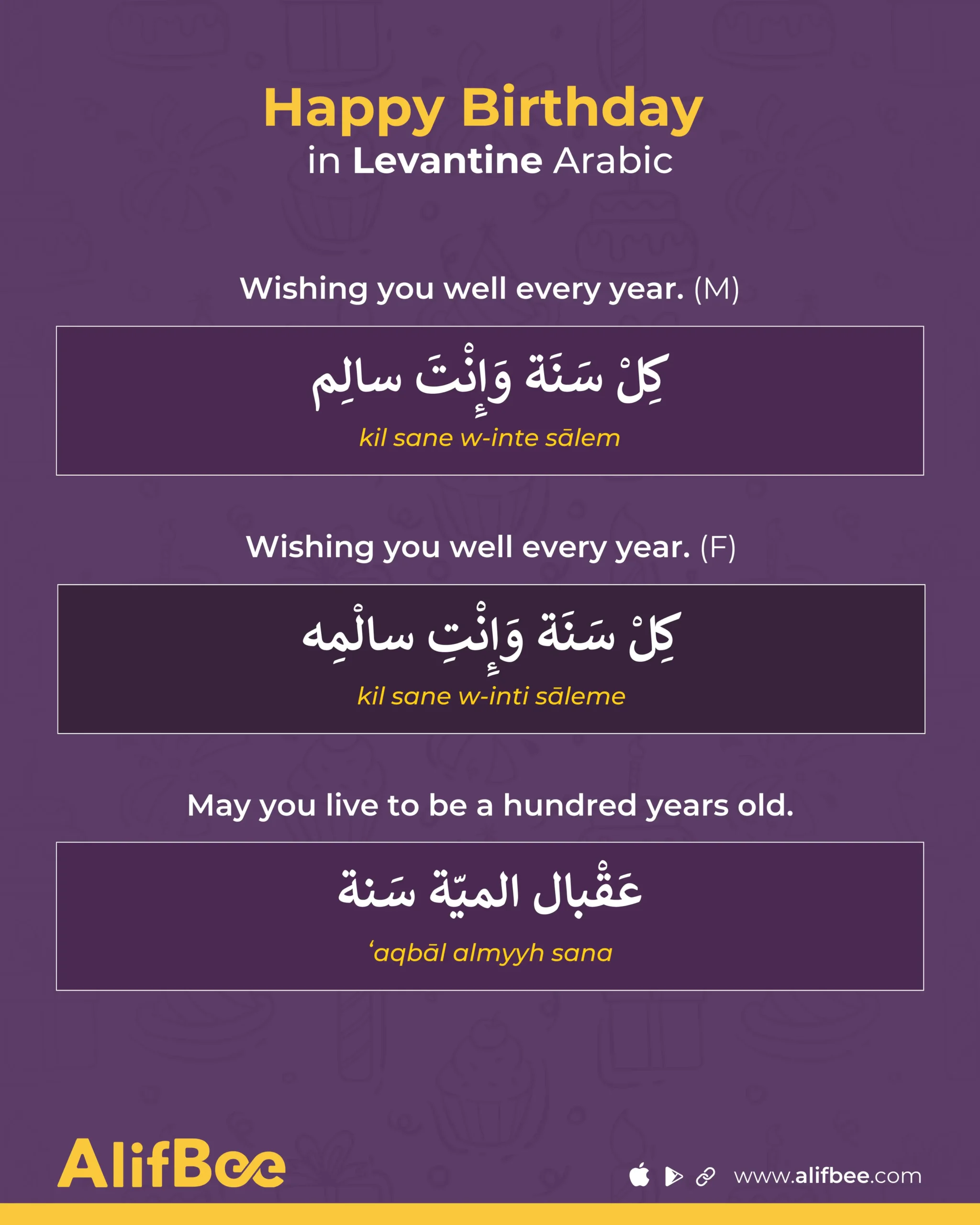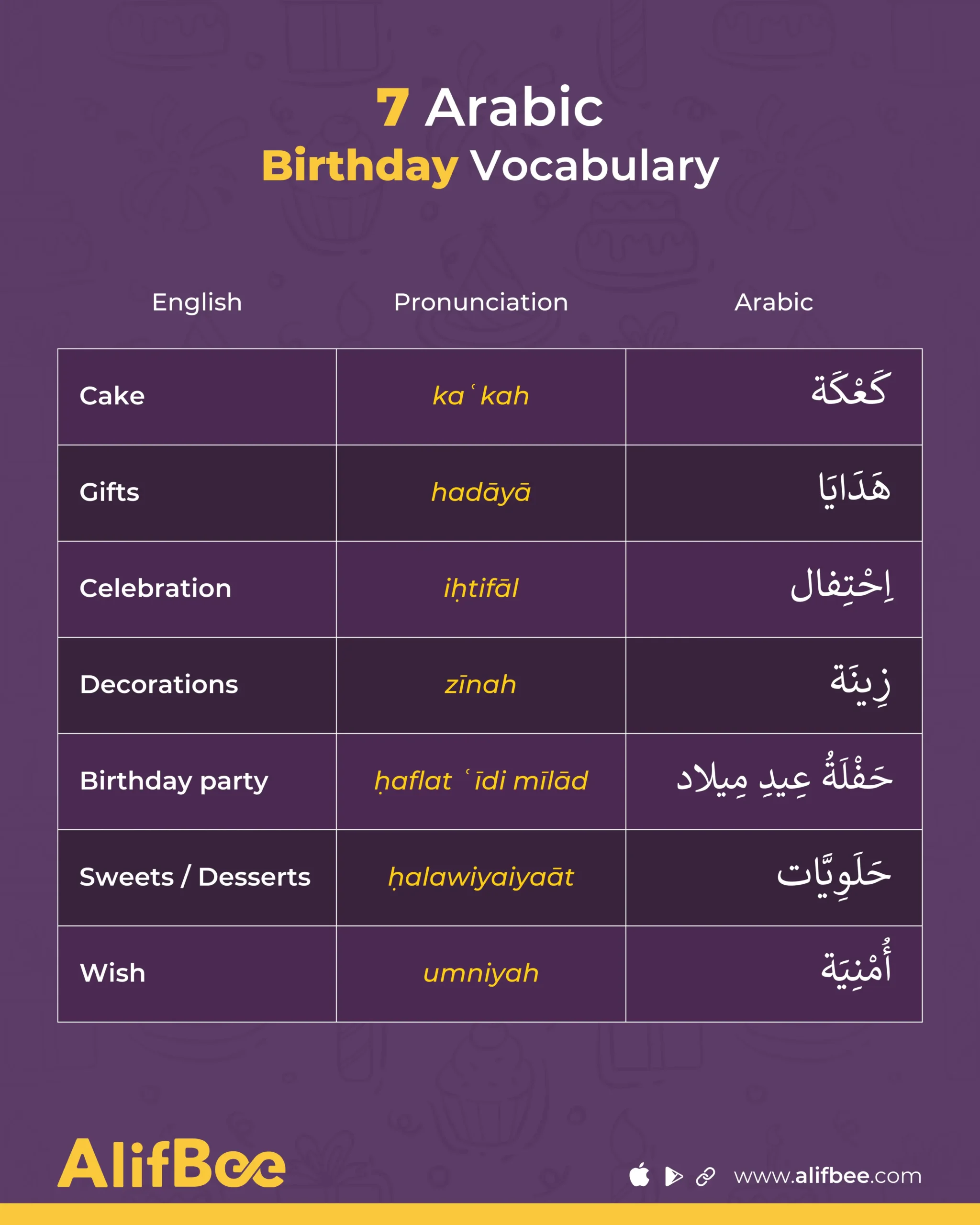 Learn how to say Happy Birthday in Arabic! Use عيد ميلاد سعيد (Eid milad saeed) & other birthday wishes and phrases. Get pronunciation tips!