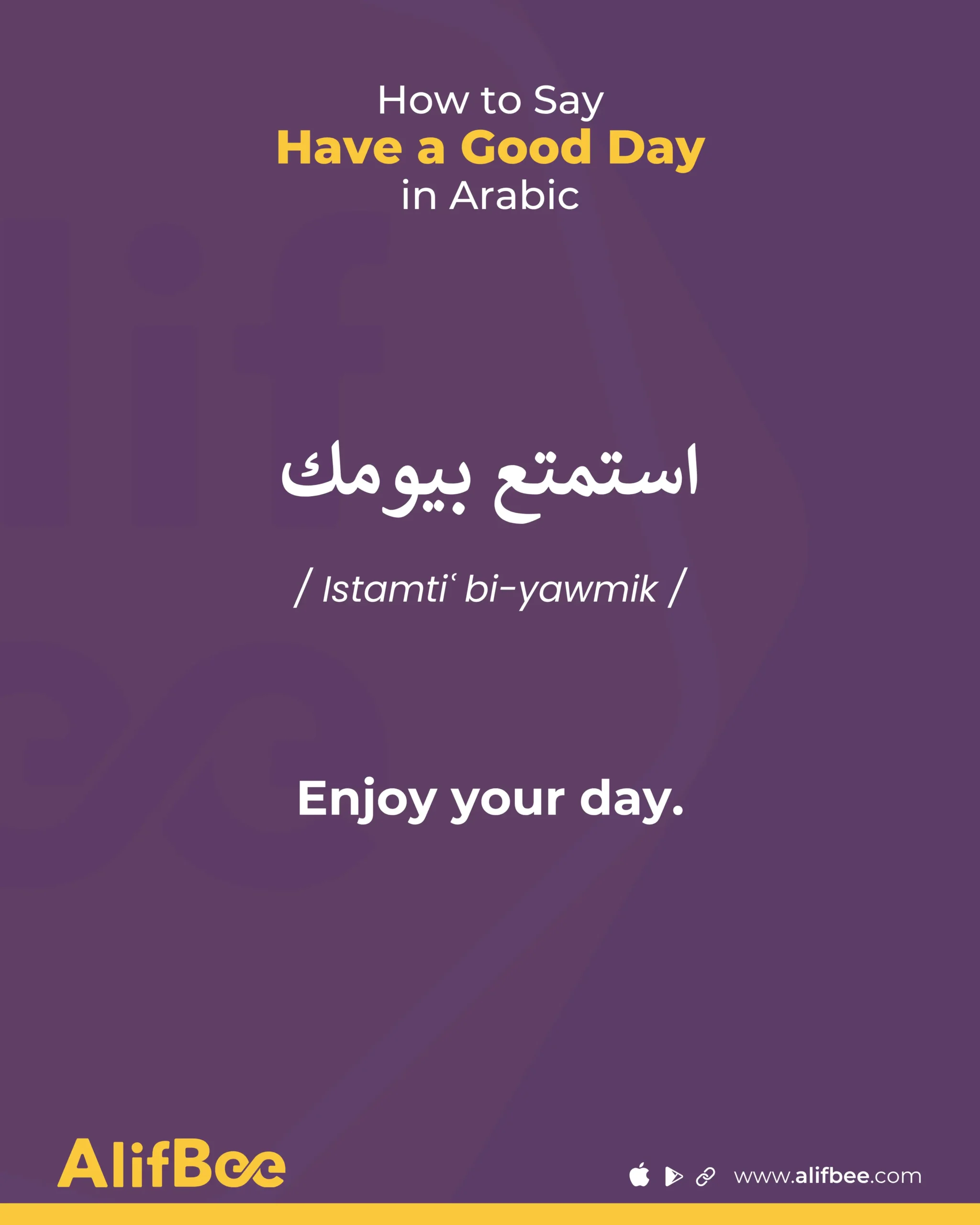 • Literal translations don’t always carry the same nuance: One Redditor writes: “The most close expression to “have a nice day” is: (youm sa’eed) يوم سعيد; lit. Happy day. But that’s not a so common thing to say.” So, knowing common usage matters.”