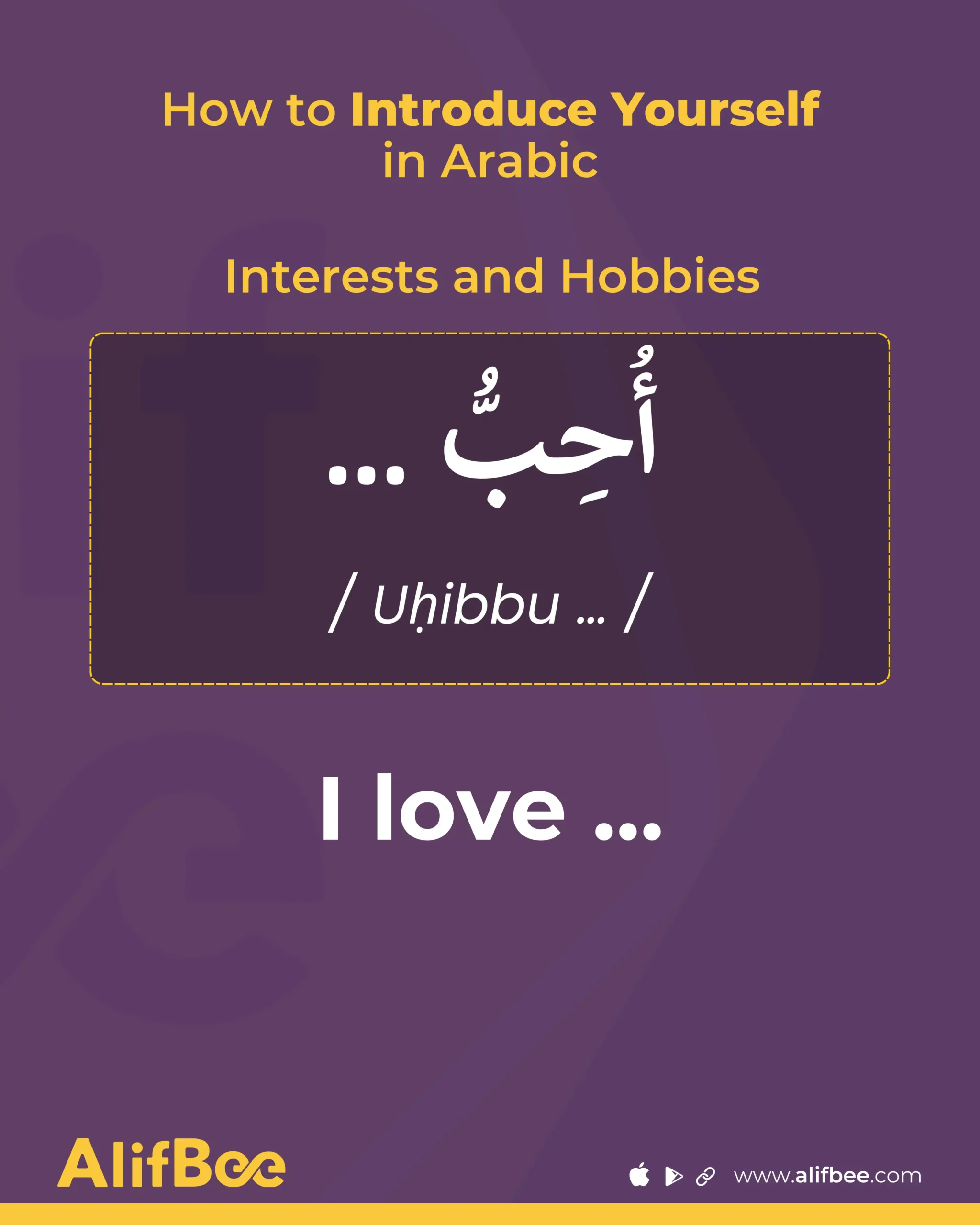 Just like in English, you can follow this structure with a noun like ‘music’ or a verb in the -ing that acts as a noun, for example, ‘I love reading’ (أُحِبُّ القراءة).