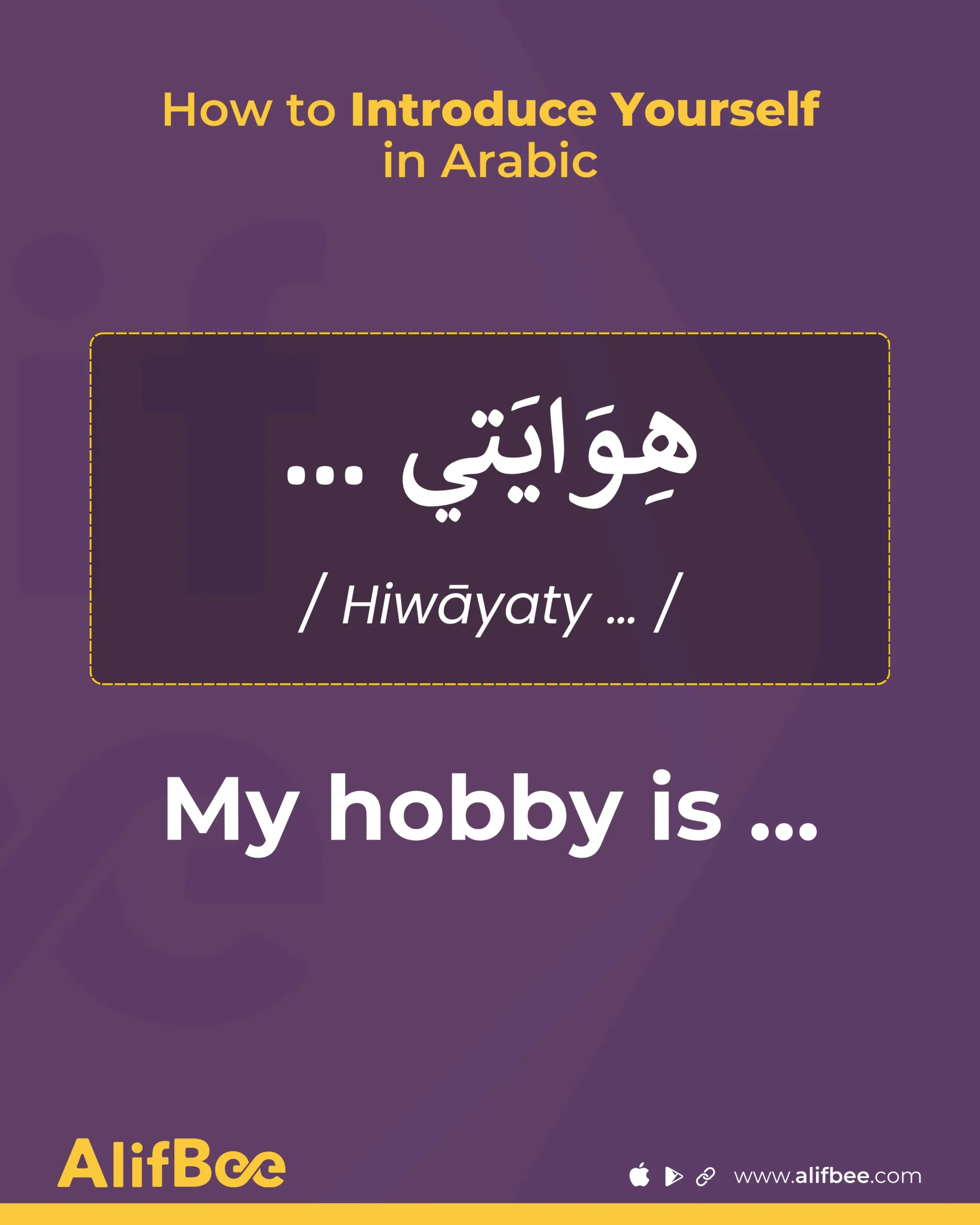 The root form of the verb هِواية (hiwāya) = “hobby,” along with that possessive suffix -ي (-y) = “my” make this structure. Just like ‘I love…,’ this can be followed by a noun or verbal noun, هِوايتي الرسم (My hobby is drawing).
