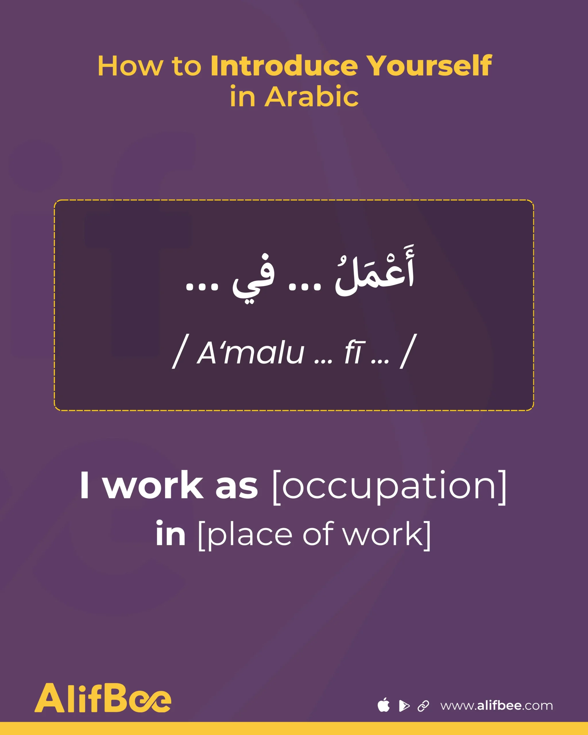 Use this simple structure to talk about your position and where you work. It’s common stating both in one sentence. People in Arabic countries don’t necessarily give the name of the company, unless it’s popular. But they take pride in mentioning the industry they are in.