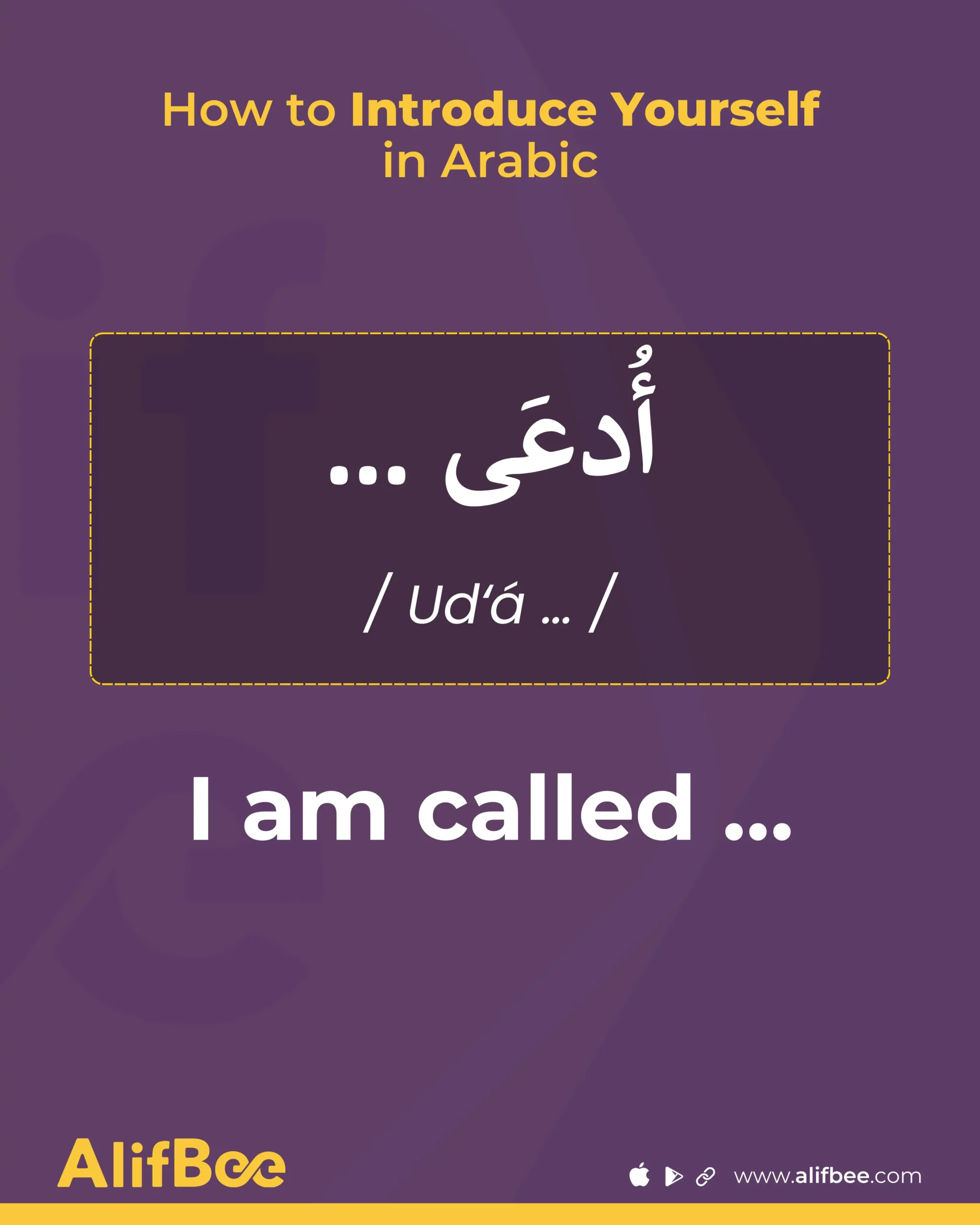 You can also use Udʻá  ‘I am called…’ for another easy way to introduce yourself in Arabic. It can be used for either a male or female speaker
