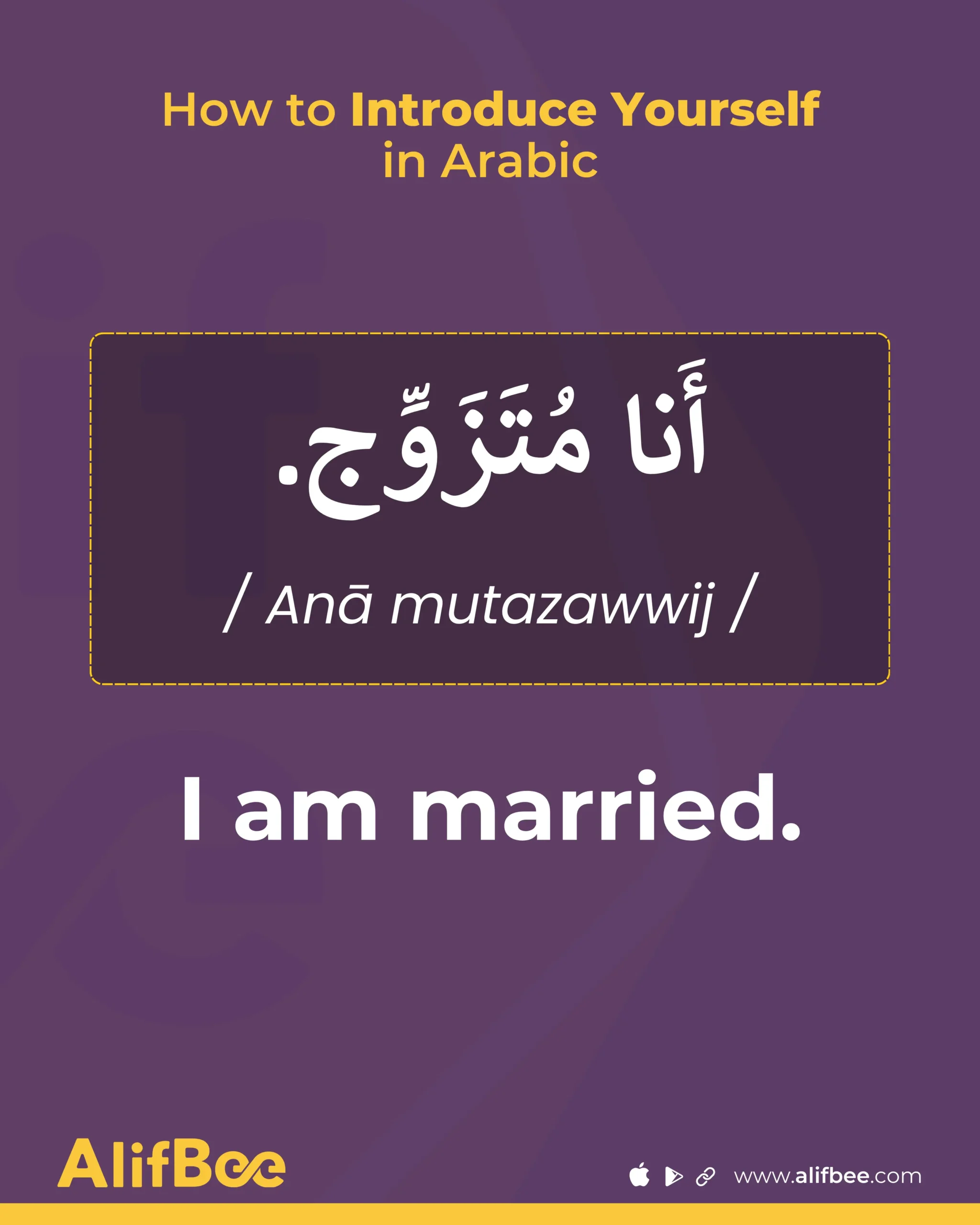 In Arabic, the simplest way to describe your social status is to use the singular pronounce Anā أنا + adjective (single, married, engaged etc.). Also, don’t forget that gender matters with these adjectives! You can add ـة for feminine forms. Let’s see a couple of examples: