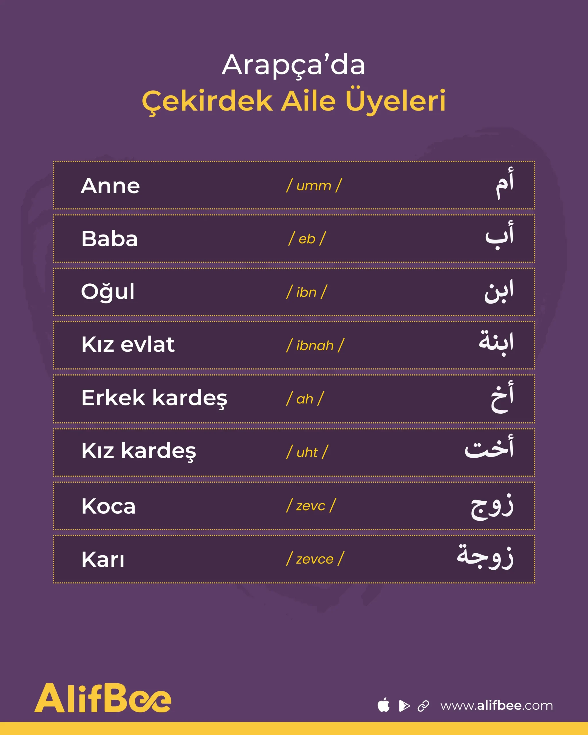 Özet Tablosu: Arapça’da Aile Üyeleri