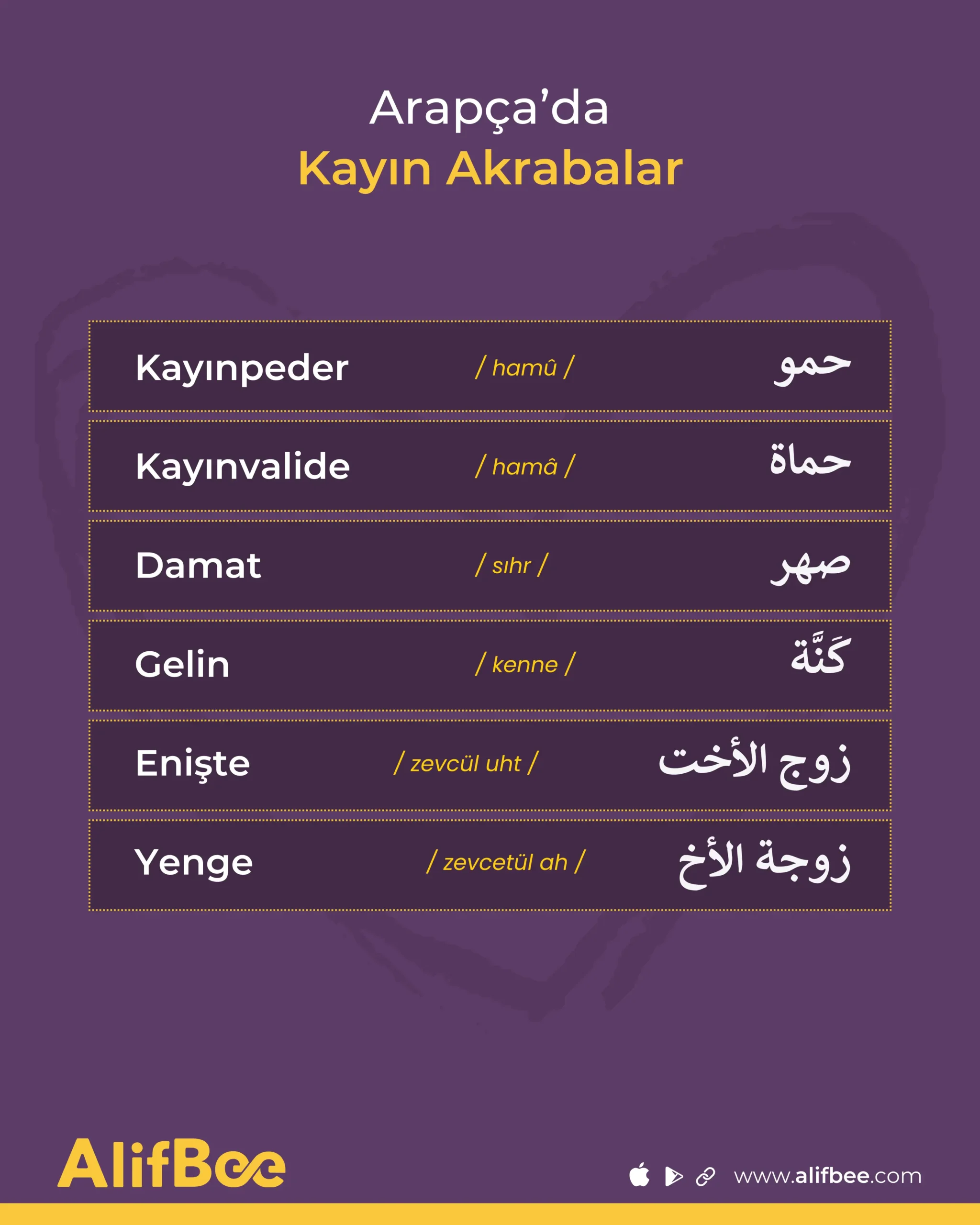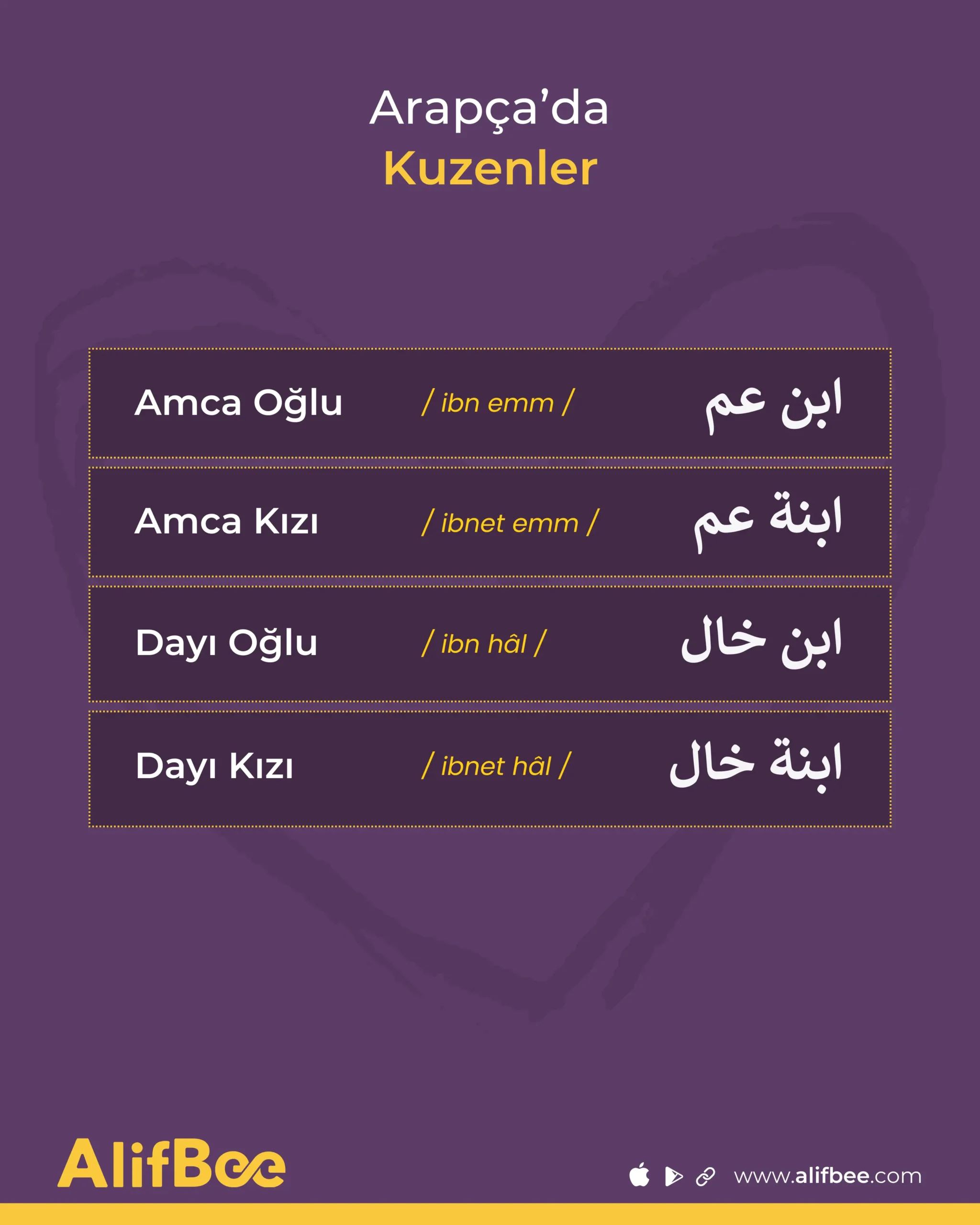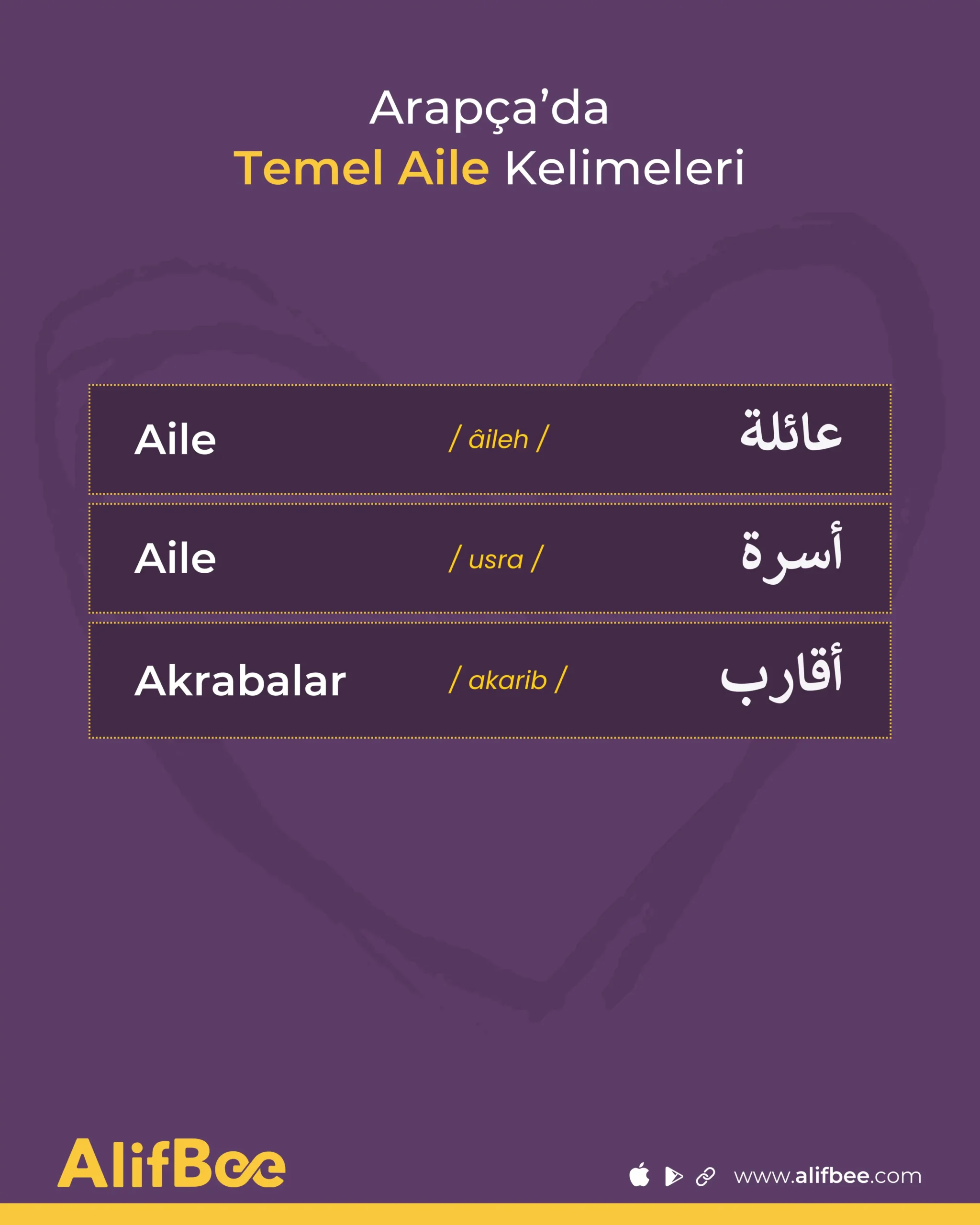 Kelime dağarcığınızı daha da geliştirmek isterseniz, şunu inceleyebilirsiniz: Aile ve İlişkiler Hakkında 10 Arapça İfade