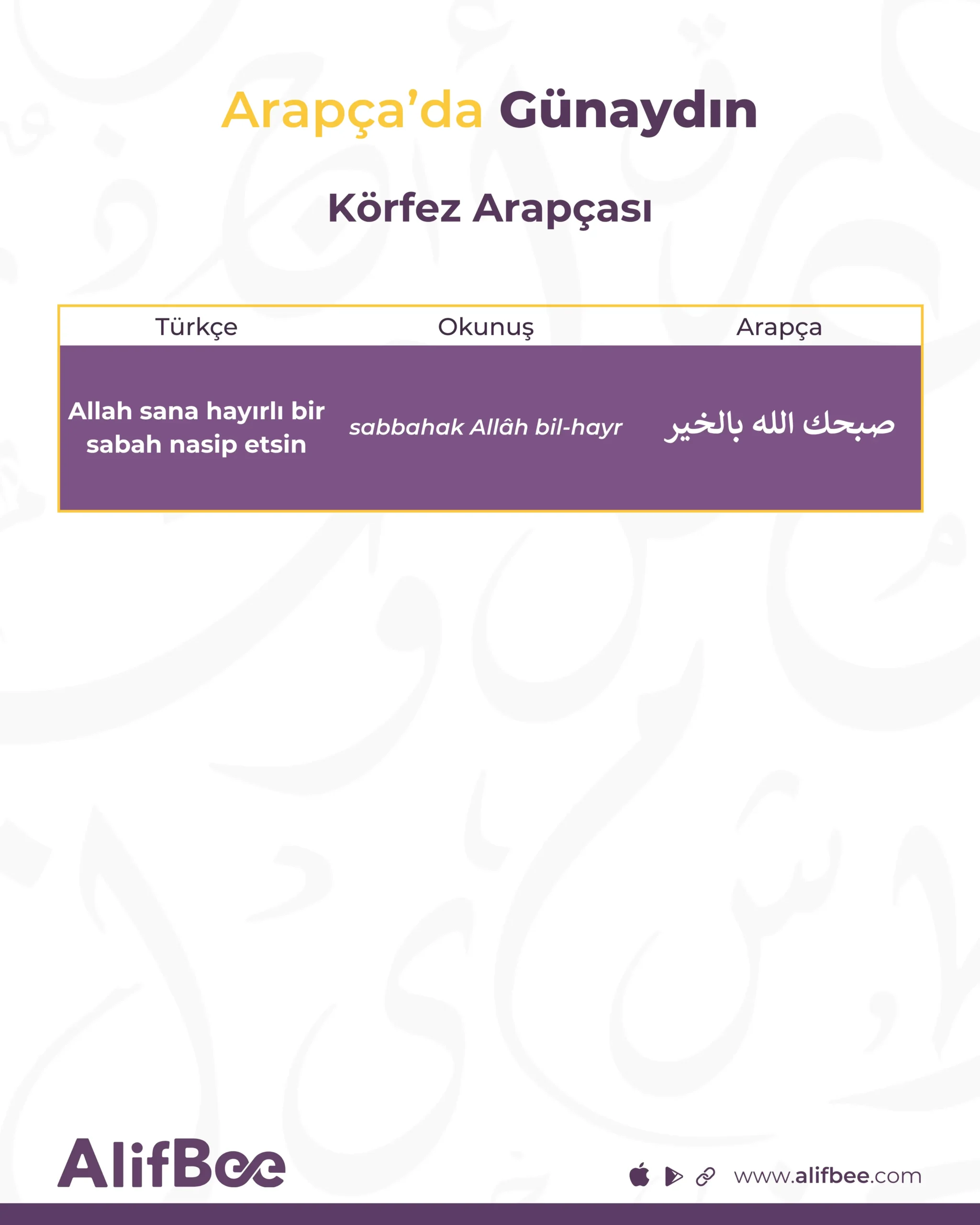 صبحك الله بالخير (Sabbahak Allâh bil-hayr) — “ Allah sana hayırlı bir sabah nasip etsin”