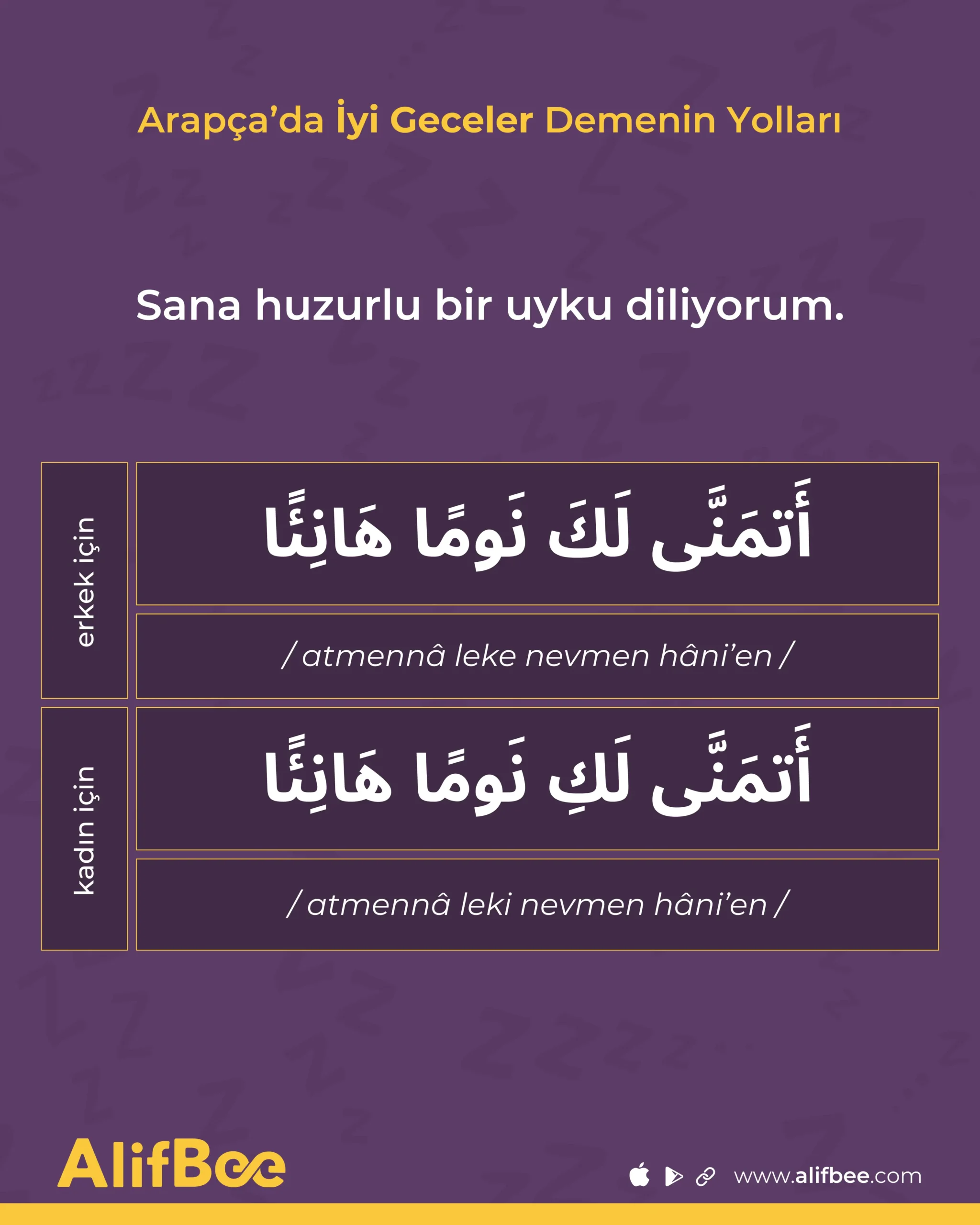 Atmennâ leke nevmen hâni’en - أَتمَنَّى لَكَ نَومًا هَانِئًا