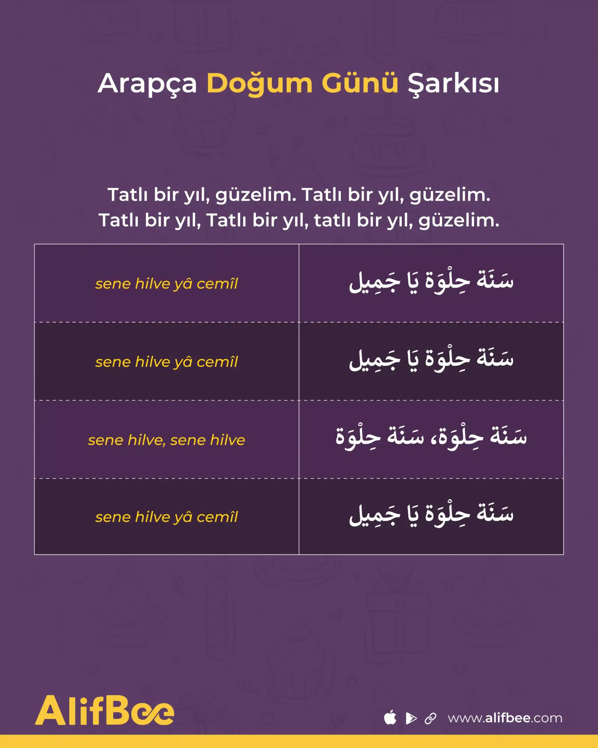 sene hilve yâ cemîl sene hilve yâ cemîl sene hilve, sene hilve sene hilve yâ cemîl