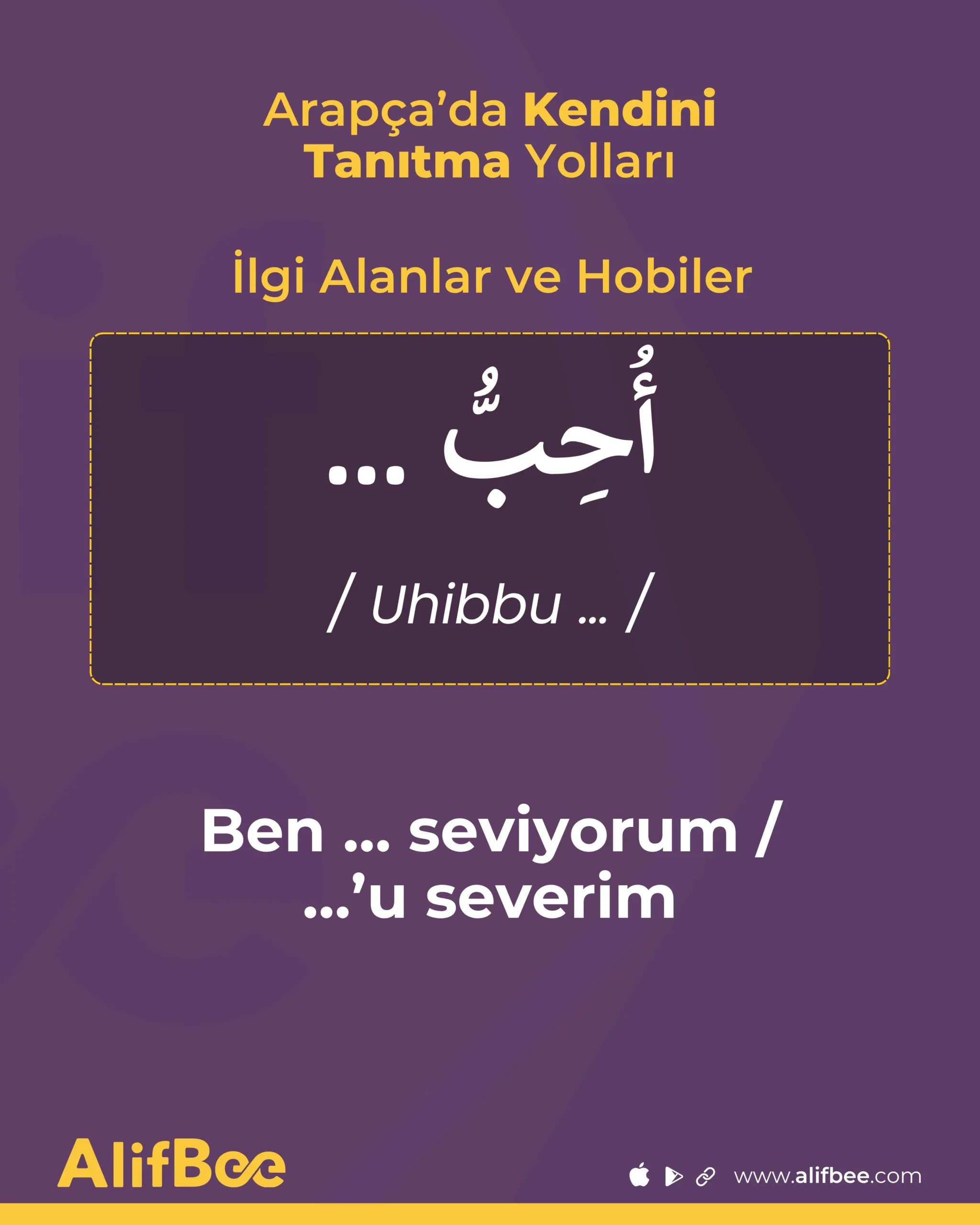 Örneğin: “Okumayı seviyorum” أُحِبُّ القراءة (uhibbu el-kiraʾe)