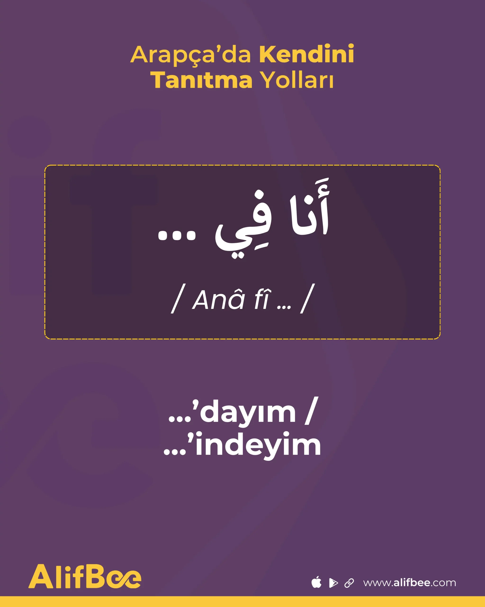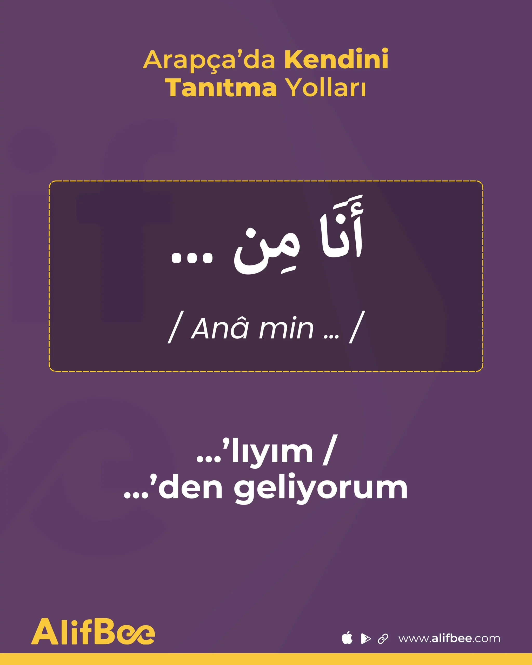 Arapça’da kendini tanıtmanın üç farklı yoluyla başlayalım. Unutulmaması gereken bir nokta da şu: Bu ifadeler hem erkek hem de kadın konuşmacılar tarafından kullanılabilir ve her ikisine de hitap eder. Yani aklında tutman gereken bir şey eksildi!