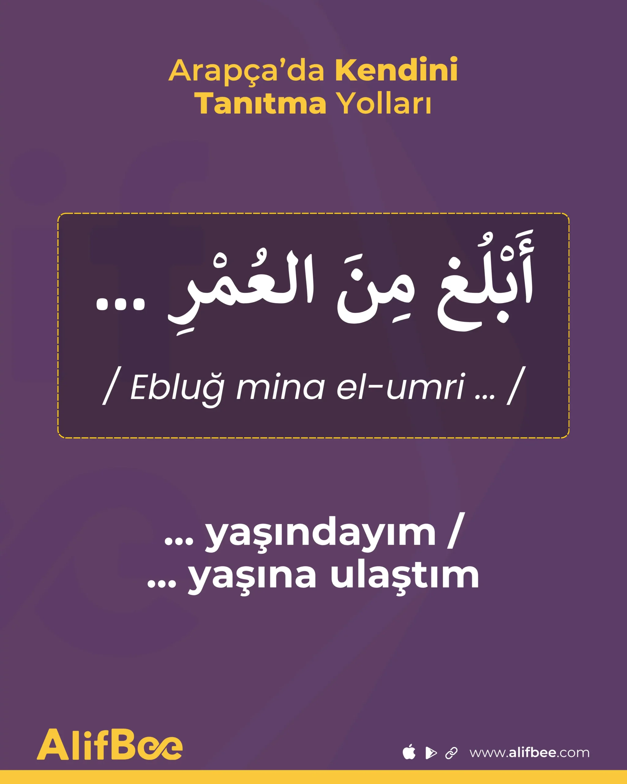 Bu, yaş belirtmenin resmi ve klasik bir yoludur. Fusha’ya yakındır ve özellikle resmi belgelerde, bazı edebiyat eserlerinde veya konuşmalarda karşına çıkabilir.